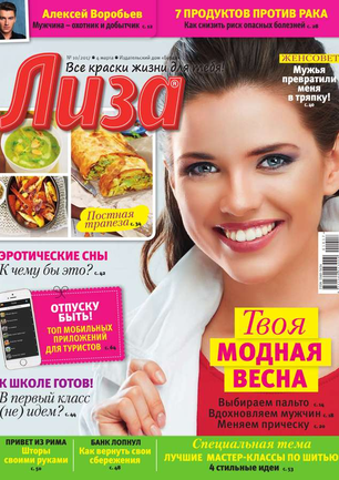 Самый популярный в России еженедельный журнал для молодых женщин «Лиза» стал еще интереснее, еще привлекательнее для читательниц. Теперь больше знаменитостей на страницах любимого журнала! Фитнес со звездой и звездный макияж, уроки стиля и самые горячие новости из жизни кумиров. А еще — модный шопинг, актуальная мода, новинки косметики и великолепные идеи для дома. Романтические истории о настоящей любви и рассказы читательниц о разных жизненных ситуациях. Аспекты психологии, секреты успешных отношений с окружающими и искусство сохранения любви.