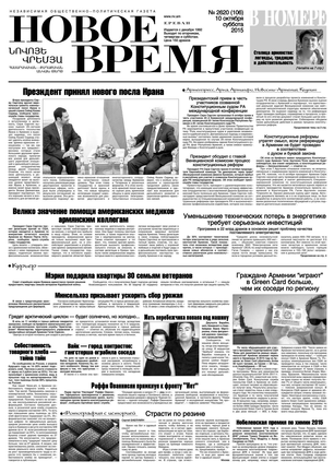 Общественно- политическая газета “Новое Время” была создана в 1992-м году и за 20 лет своего существования сумела заслужить среди армянских читателей право называться лучшей русскоязычной газетой в РА. Помимо сугубо политических тем издание обращается также к вопросам социальным, научным, культурным. Внимание уделяется и проблемам армянской диаспоры…