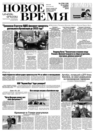 Общественно- политическая газета “Новое Время” была создана в 1992-м году и за 20 лет своего существования сумела заслужить среди армянских читателей право называться лучшей русскоязычной газетой в РА. Помимо сугубо политических тем издание обращается также к вопросам социальным, научным, культурным. Внимание уделяется и проблемам армянской диаспоры…