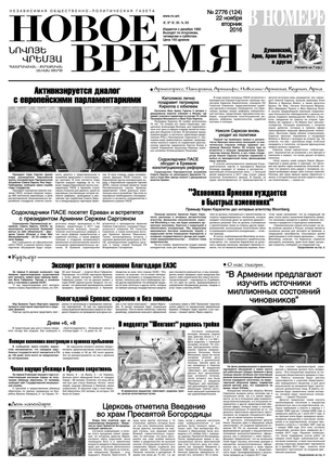 Общественно- политическая газета “Новое Время” была создана в 1992-м году и за 20 лет своего существования сумела заслужить среди армянских читателей право называться лучшей русскоязычной газетой в РА. Помимо сугубо политических тем издание обращается также к вопросам социальным, научным, культурным. Внимание уделяется и проблемам армянской диаспоры…