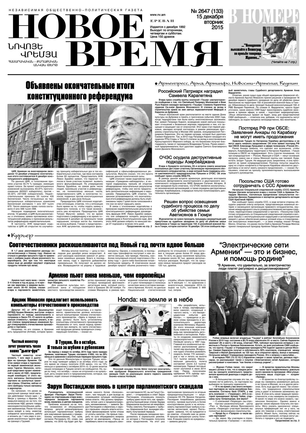 Общественно- политическая газета “Новое Время” была создана в 1992-м году и за 20 лет своего существования сумела заслужить среди армянских читателей право называться лучшей русскоязычной газетой в РА. Помимо сугубо политических тем издание обращается также к вопросам социальным, научным, культурным. Внимание уделяется и проблемам армянской диаспоры…