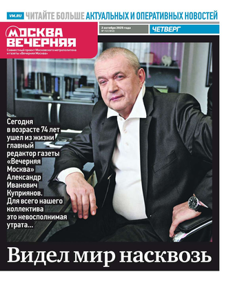 «Вечерняя Москва» — ежедневная российская вечерняя газета, старейшее из вечерних изданий в России, учрежденное в 1923 году. Выходит пять дней в неделю, кроме субботы и воскресенья. Отличается тем, что рассказывает о событиях еще не завершившегося дня. Оперативно освещает хронику и особенности жизни Москвы, охватывает все слои общества и большинство профессиональных и возрастных групп читателей.Издание представлено тремя выпусками – утренним ежедневным, вечерним (выходит три раза в неделю), еженедельным (выходит по четвергам).