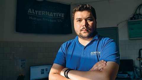 Штаб-квартира «Альтернативы» расположилась в модном лофте фабрики «Красный октябрь» в центре столицы. На стене висит схематичная карта мира с надписью ALTERNATIVE Human Freedom Life (АЛЬТЕРНАТИВА. Человек, Свобода, Жизнь).