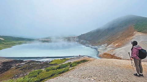 Только я прилетела не за границу, а на Курилы, в аэропорт Менделеево. Кунашир - один из трех обитаемых островов Южно-Курильской гряды. "Столица" острова - Южно-Курильск, поселок городского типа с населением семь тысяч человек. Кунашир ближе всего расположен к Японии. До Хоккайдо около 20 километров, поэтому сотовая связь путается. Чтобы случайно не списались деньги с телефона, рекомендуют по возможности сразу перевести гаджет в авиарежим. И включать только в местах, где есть wi-fi.